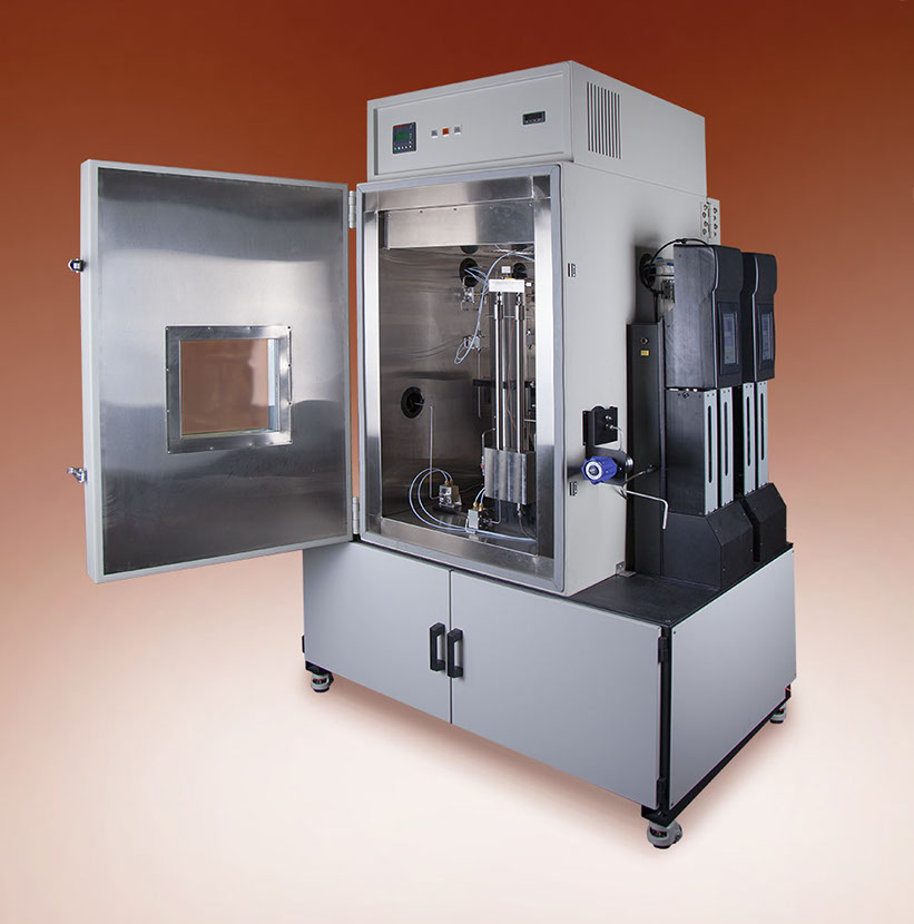 DCI’s CFAS™ technology (Patented) incorporates the two phase separator with two VPA syringe pumps to provide highly accurate measurement of the volume of two different phases that are produced in a core flood experiment, even when the volumes of fluids produced exceeds the volume capacity of the two phase separator. In this arrangement, one of the VPAs is operated in external transducer feedback mode, with the analog signal from the two phase separator as the feedback signal. In this mode, the VPA receives any of the higher density fluid that is produced and maintains the meniscus level at a constant level in the separator. Thus, the VPA provides a very accurate measurement of the volume of the higher density fluid that is produced. The second VPA is connected to the upper outlet port of the two phase separator (outlet for the lower density fluid). This VPA operates in a pressure feedback mode, thus controlling the back pressure in the two phase separator, and on the sample in the core flood experiment. Any of the lower density fluid that is produced by the experiment is received by this second VPA, and the volume received is measured precisely. Using dual cylinder syringe pumps in each of these two functions provides the ability to receive infinite volume of either fluid that is produced by the system. This allows volumes of fluid larger than the capacity of the two phase separator to flow through the sample while equilibrium is established, and still maintain a precise measurement of each fluid volume that is produced.